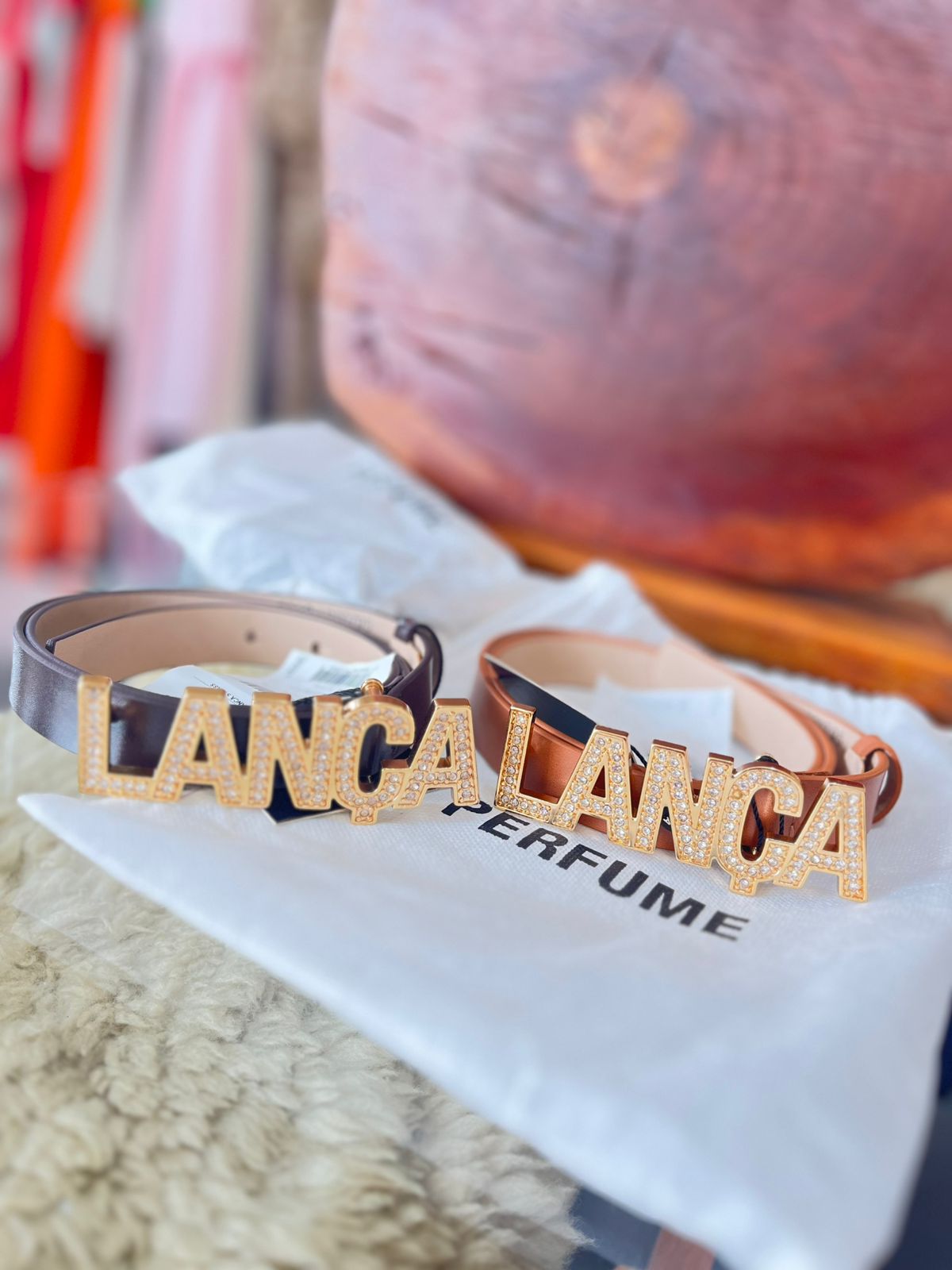 Cinto Lança Perfume com aplicação de strass, perfeito para adicionar brilho e sofisticação ao look. Um acessório marcante que valoriza qualquer produção, do casual ao mais elegante, com o toque glamuroso característico da marca.