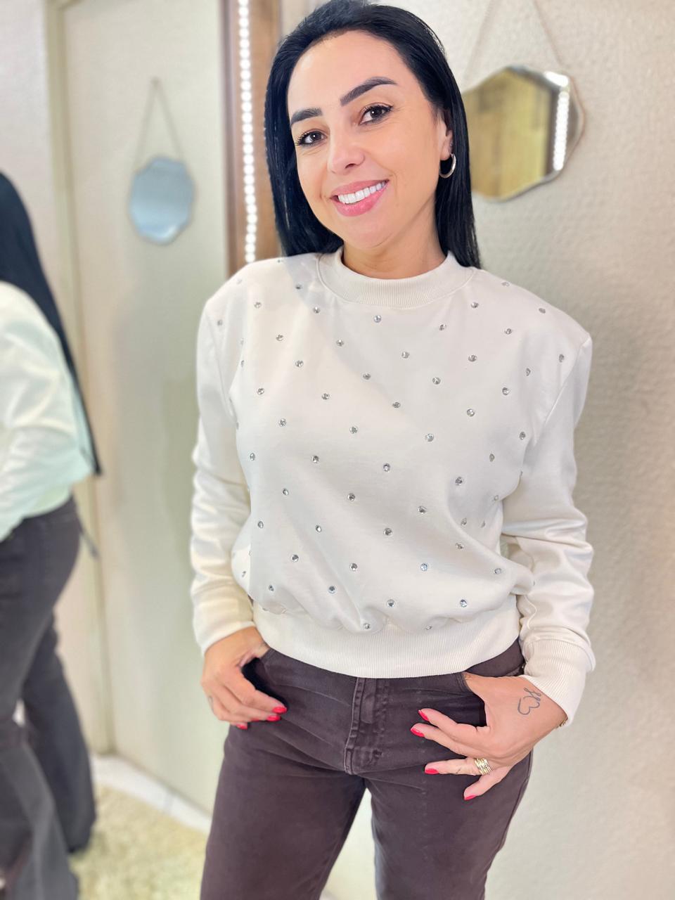 O Moletom com Aplicações Lança Perfume é a peça perfeita para quem quer unir conforto e estilo em um só visual. Com toque macio e aplicações que elevam o design, ele transforma o básico em sofisticado com muita personalidade. Ideal para looks urbanos e cheios de autenticidade. Mais um destaque fashion da Loja Danusa, feito para mulheres que não abrem mão do estilo em nenhum momento!